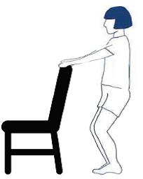 Debout, pieds légèrement écartés, tenez-vous sur le dossier d’une chaise. Pliez lentement les genoux, en gardant le dos droit, sans soulever les talons. Maintenez la position 15 secondes (ou plus selon votre tolérance) et revenez à la position de départ.