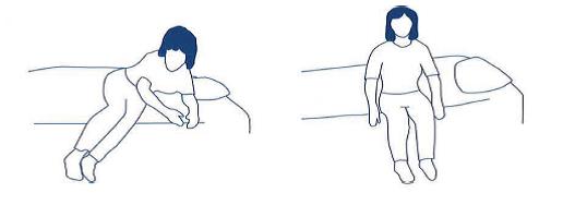 Pour vous lever du lit, tournez-vous sur le côté, jambes pliées. Amenez les jambes au bord du lit et aidez-vous de vos bras pour vous redresser.