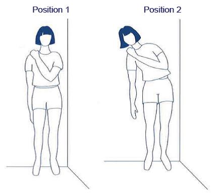 En gardant les fesses et la hanche collées au mur, glissez lentement le haut du corps vers le côté sur le mur en vous assurant que les omoplates et le bras restent en contact avec le mur.