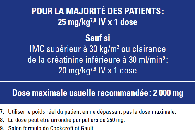 Dose de charge selon l'IMC et la fonction rénale