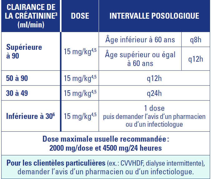 La prescription d’une dose de charge est indiquée pour les patients dans un état critique, souffrant d’une infection sévère ou pour qui il est nécessaire d’atteindre des concentrations thérapeutiques plus rapidement.