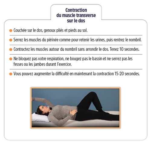 Ne pratiquez pas de sports à grand impact (course, saut, sport de contact). Ceux-ci devraient être repris progressivement, 3 à 4 mois après l’accouchement