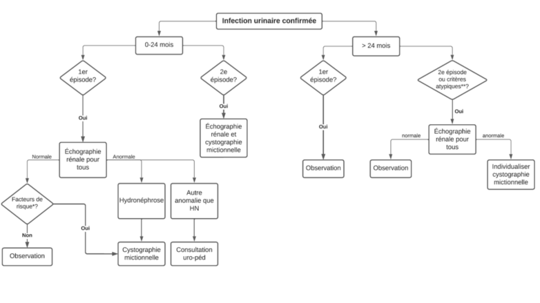Un traitement de 14 jours devrait être réservé seulement aux enfants avec uropathie significative, excluant l’hydronéphrose de grade 1 et 2.